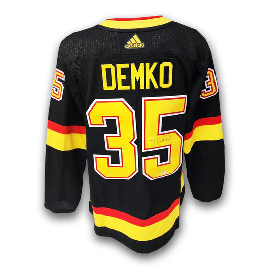 Thatcher Demko Autographed Vancouver Canucks Black Flying Skate Adidas Jersey