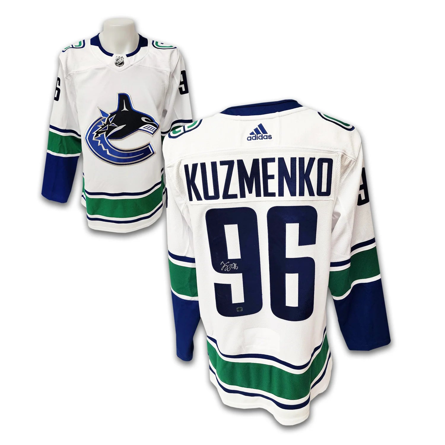 This Vancouver Canucks Adidas Jersey Jersey has been autographed by Andrei Kuzmenko