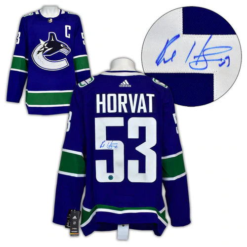 This Vancouver Canucks Adidas Jersey has been autographed by Bo Horvat