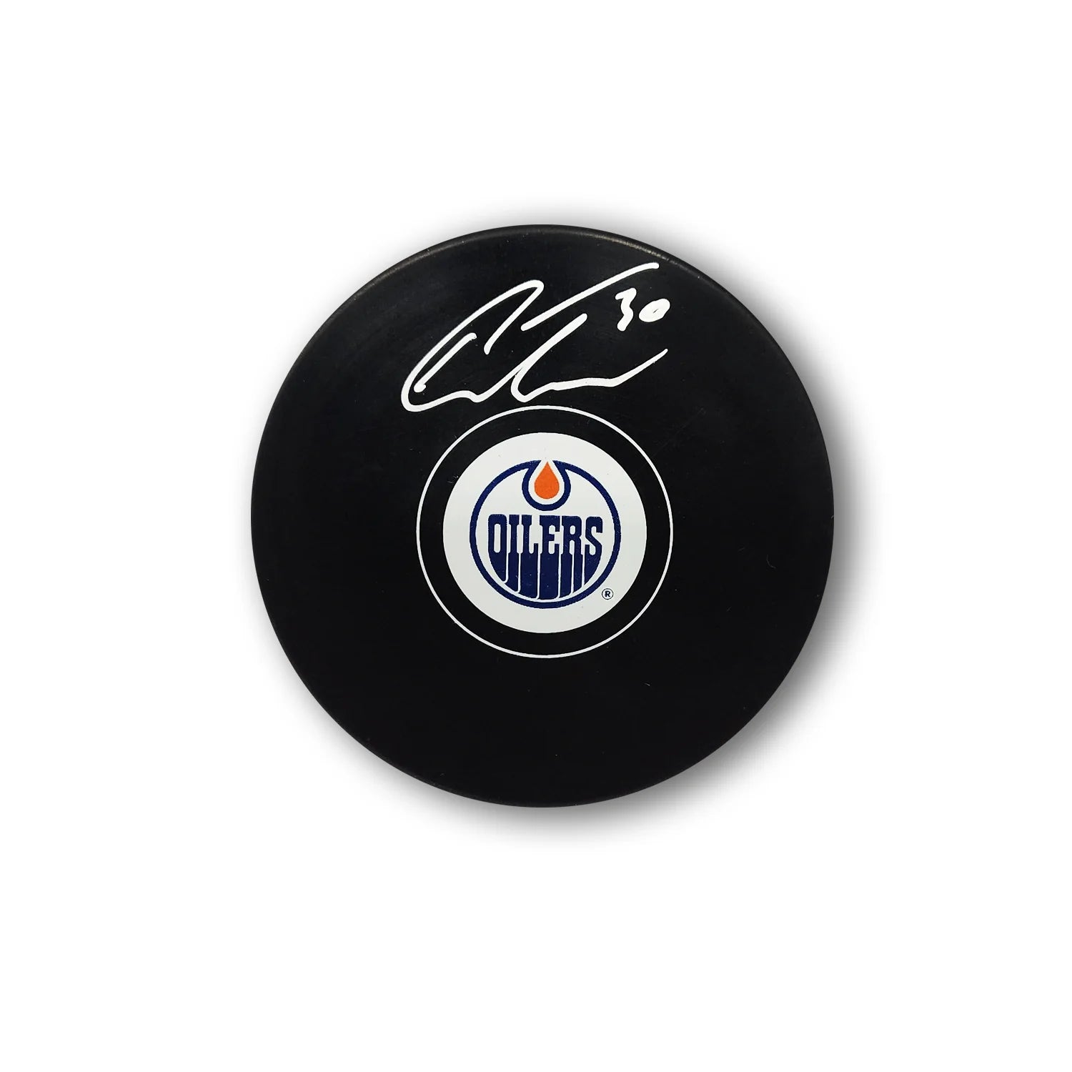 Calvin Pickard Autographed Edmonton Oilers Hockey Puck