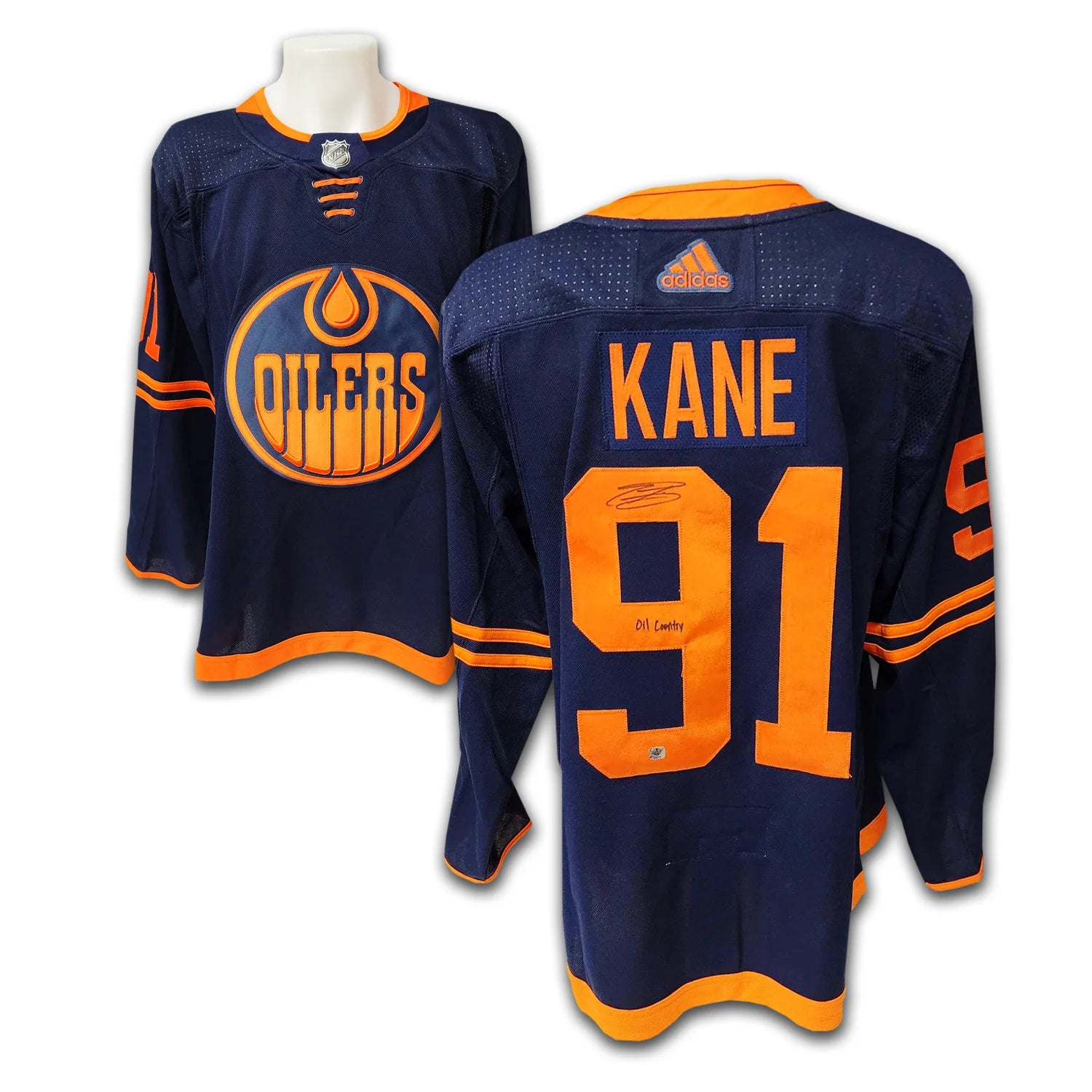 This Edmonton Oilers Adidas Jersey has been autographed by Evander Kane