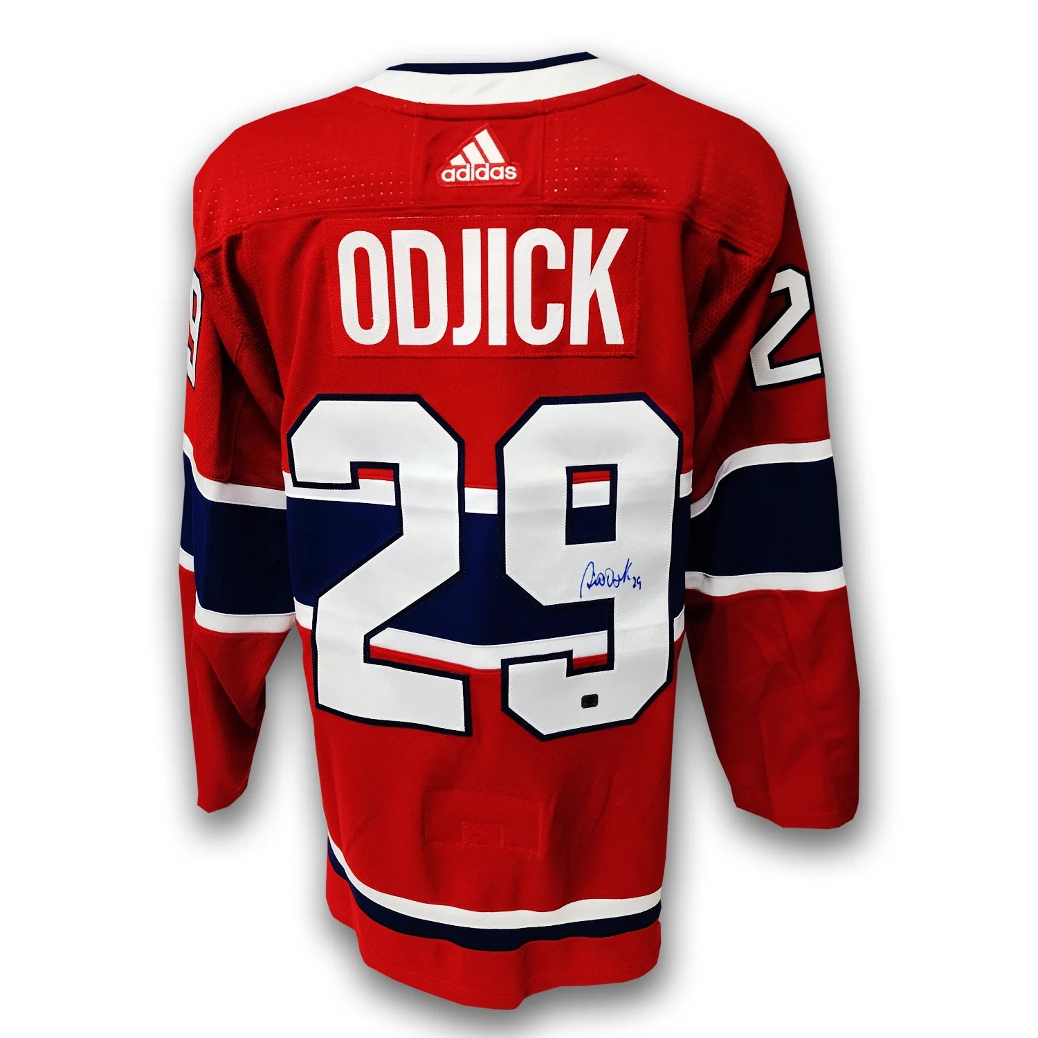 This Montreal Canadiens Adidas Jersey has been autographed by Gino Odjick