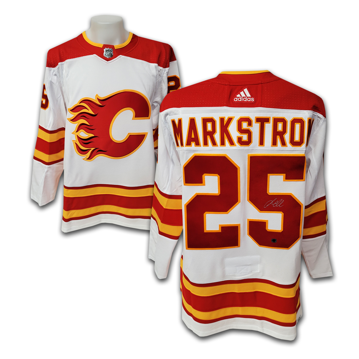 This Calgary Flames Adidas Jersey has been autographed by Jacob Markstrom