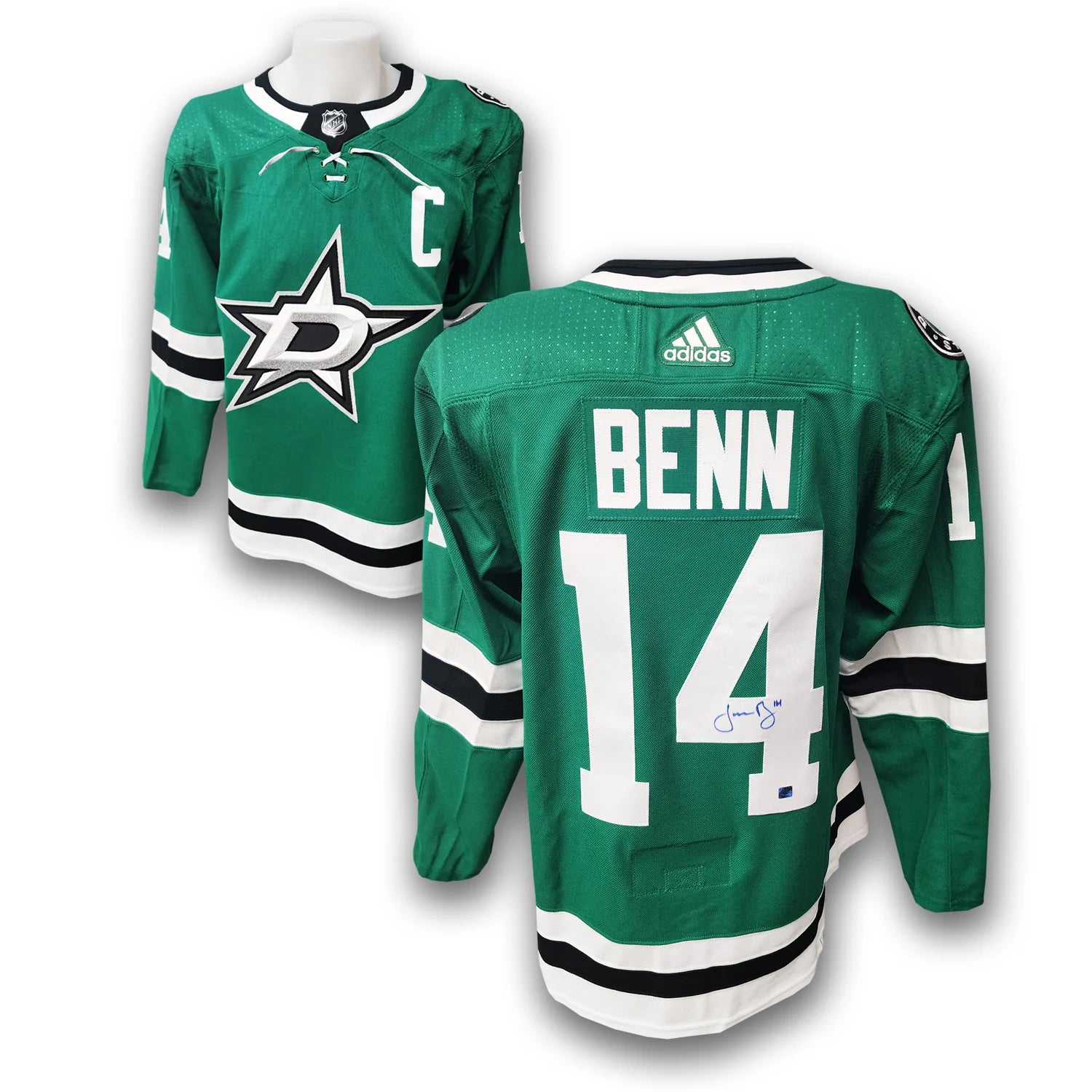 This Dallas Stars Adidas Jersey has been autographed by Jamie Benn
