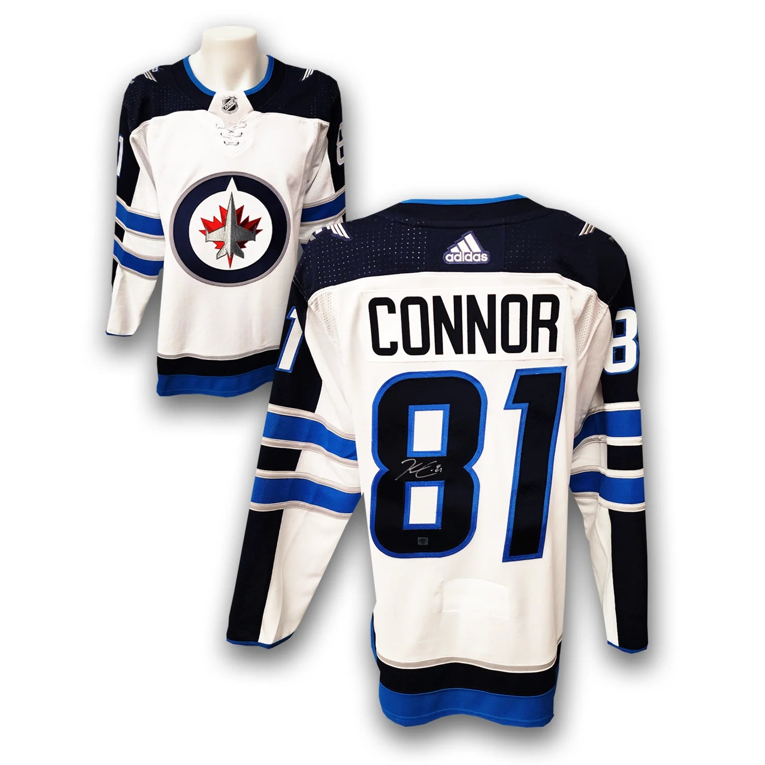 This Winnipeg Jets Adidas Jersey has been autographed by Kyle Connor