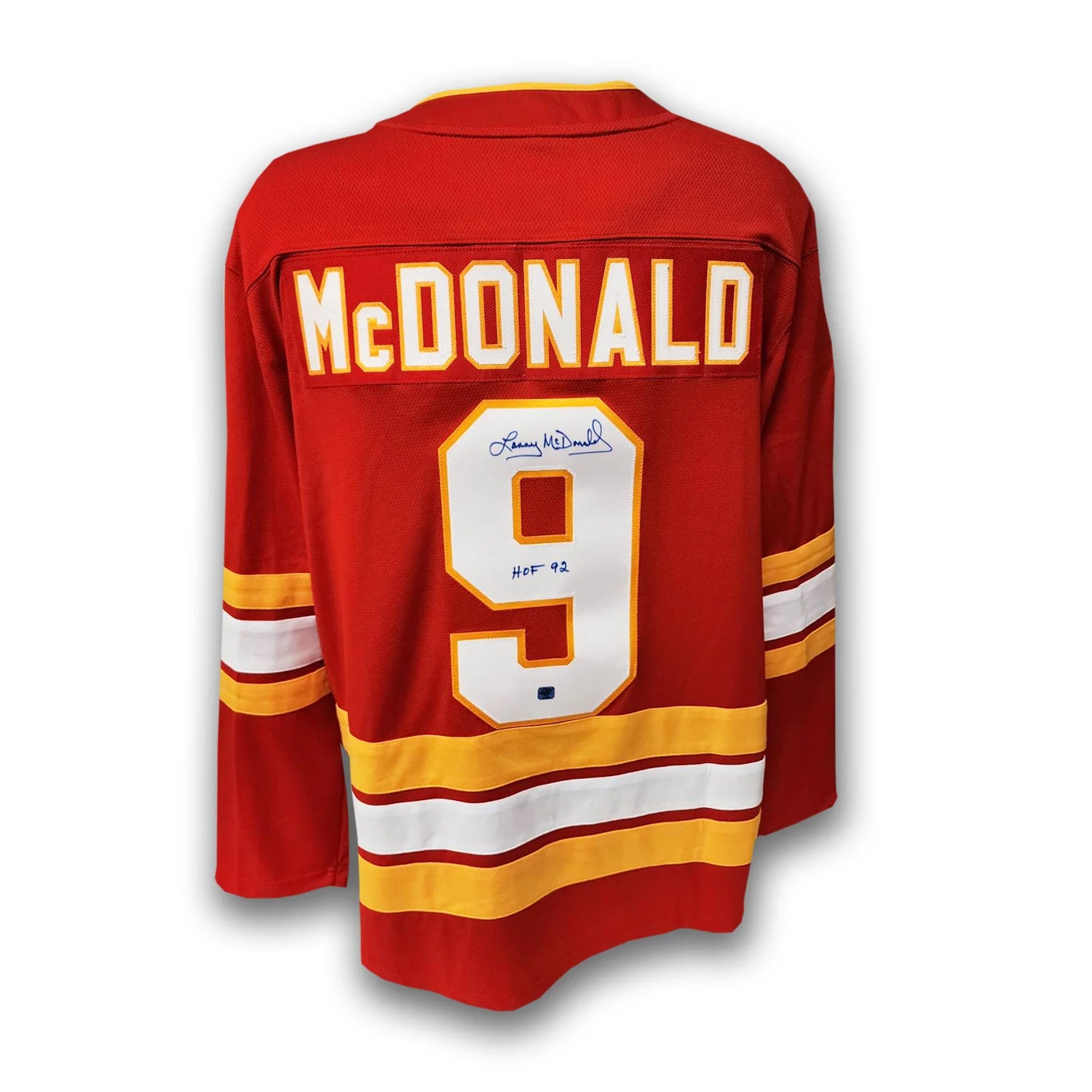 Lanny McDonald Calgary Flames Autographed Fanatics Jersey Inscribed HOF 92
