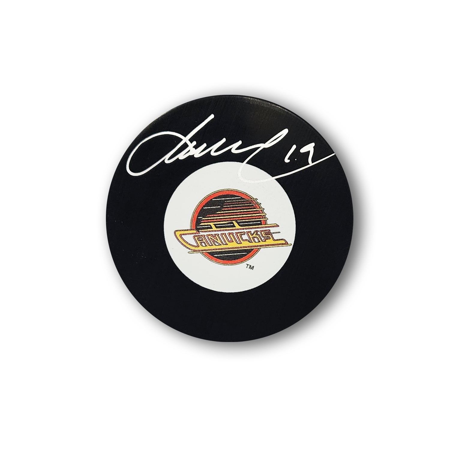 Markus Naslund Autographed Vancouver Canucks Flying Skate Hockey Puck