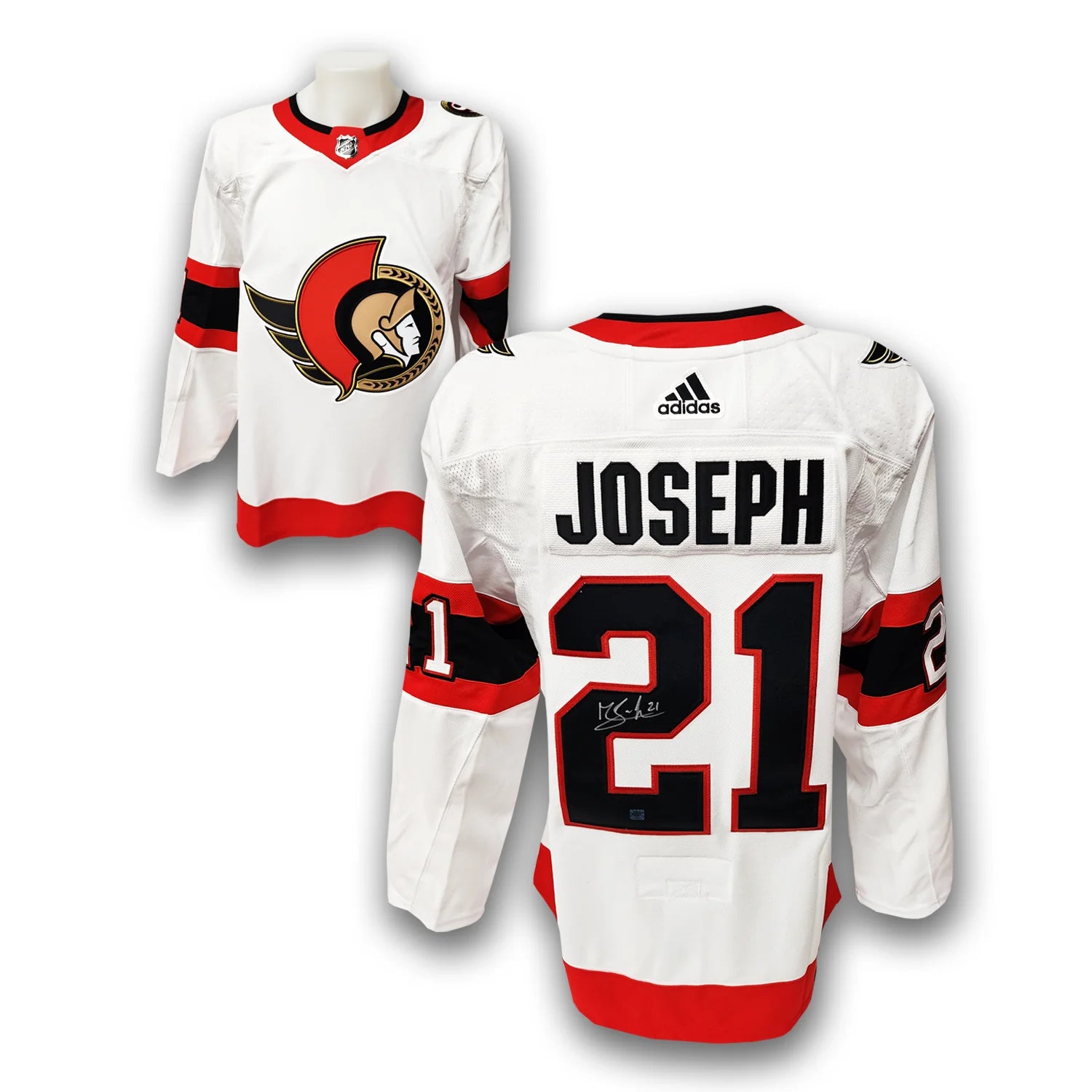 This Ottawa Senators Adidas Jersey has been autographed by Mathieu Joseph