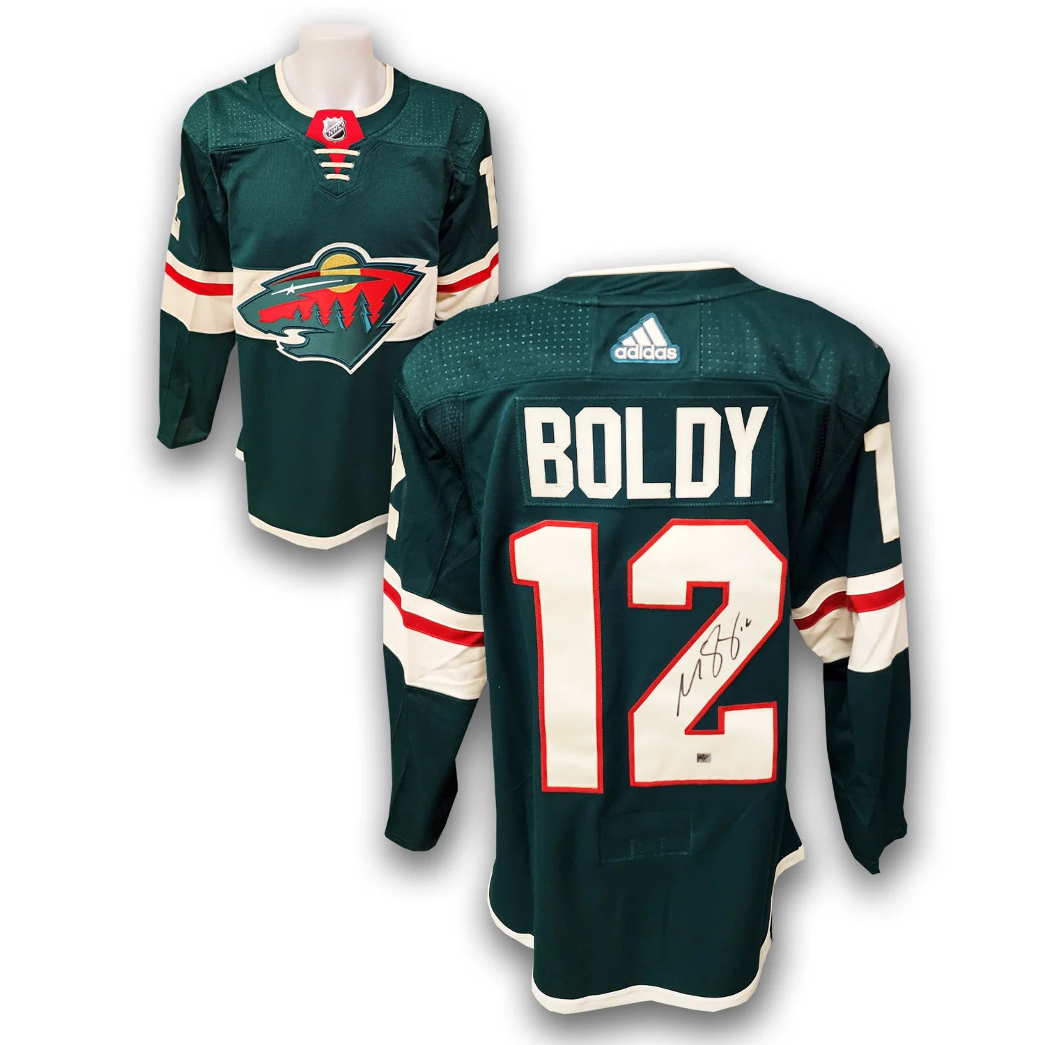 This Minnesota Wild Adidas Jersey has been autographed by Matt Boldy