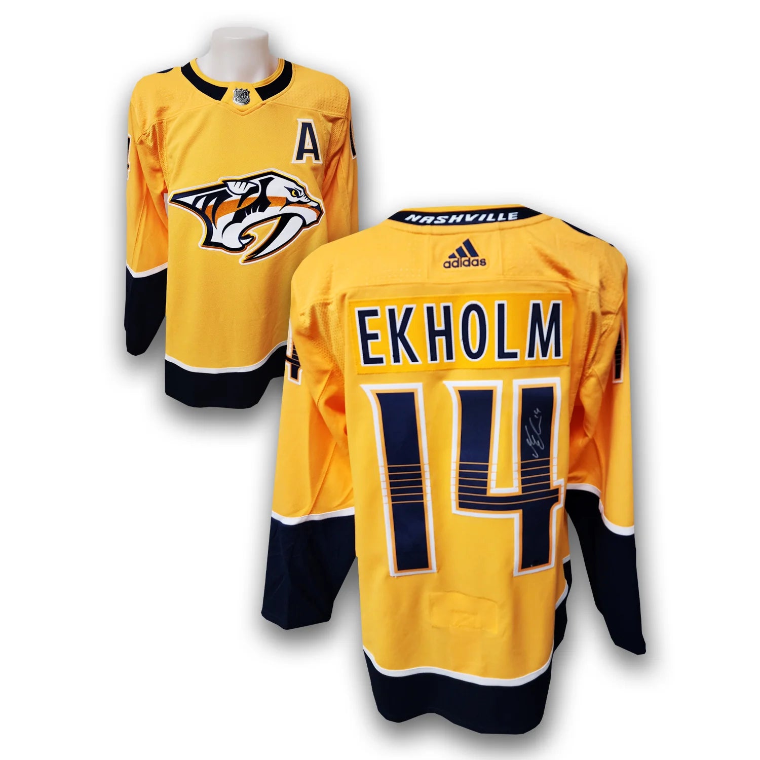 This Nashville Predators Adidas Jersey has been autographed by Mattias Ekholm