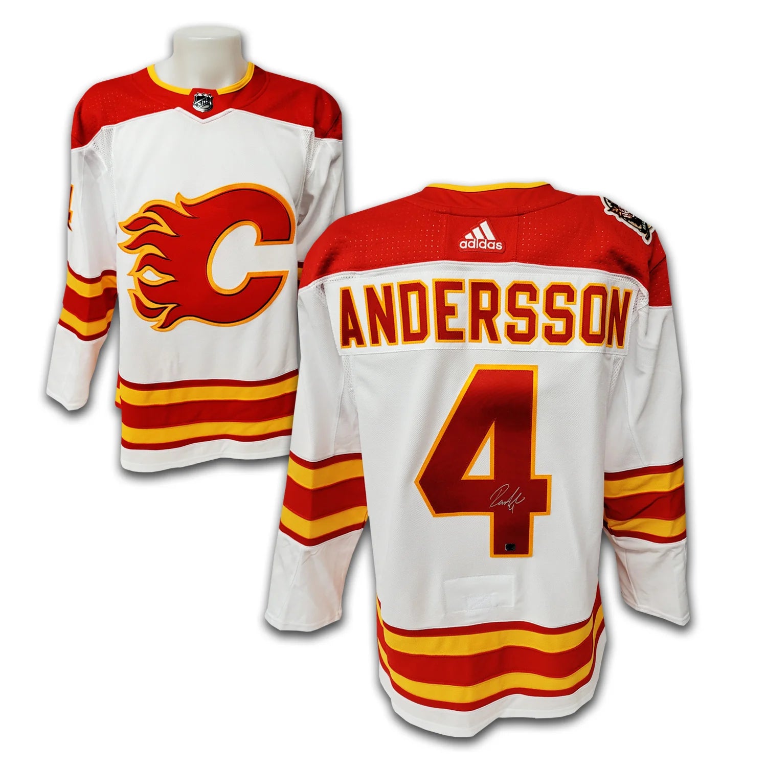This Calgary Flames Adidas Jersey has been autographed by Rasmus Andersson