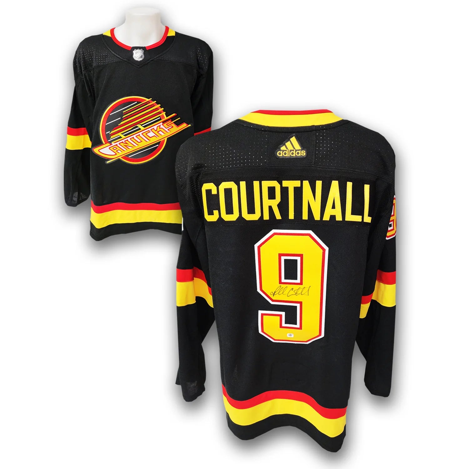 This Vancouver Canucks Adidas Jersey has been autographed by Russ Courtnall