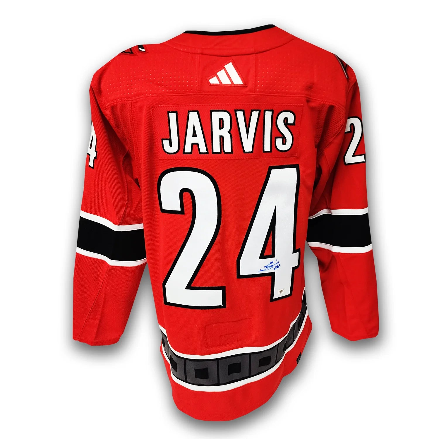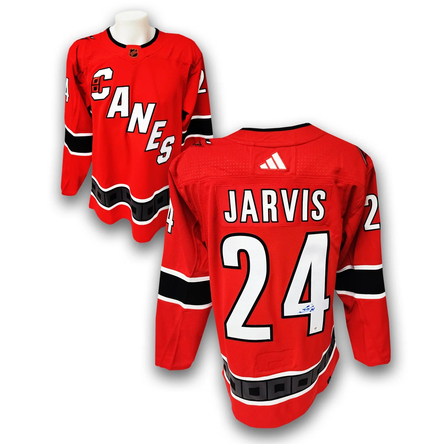 This Carolina Hurricanes Jersey has been autographed by Seth Jarvis