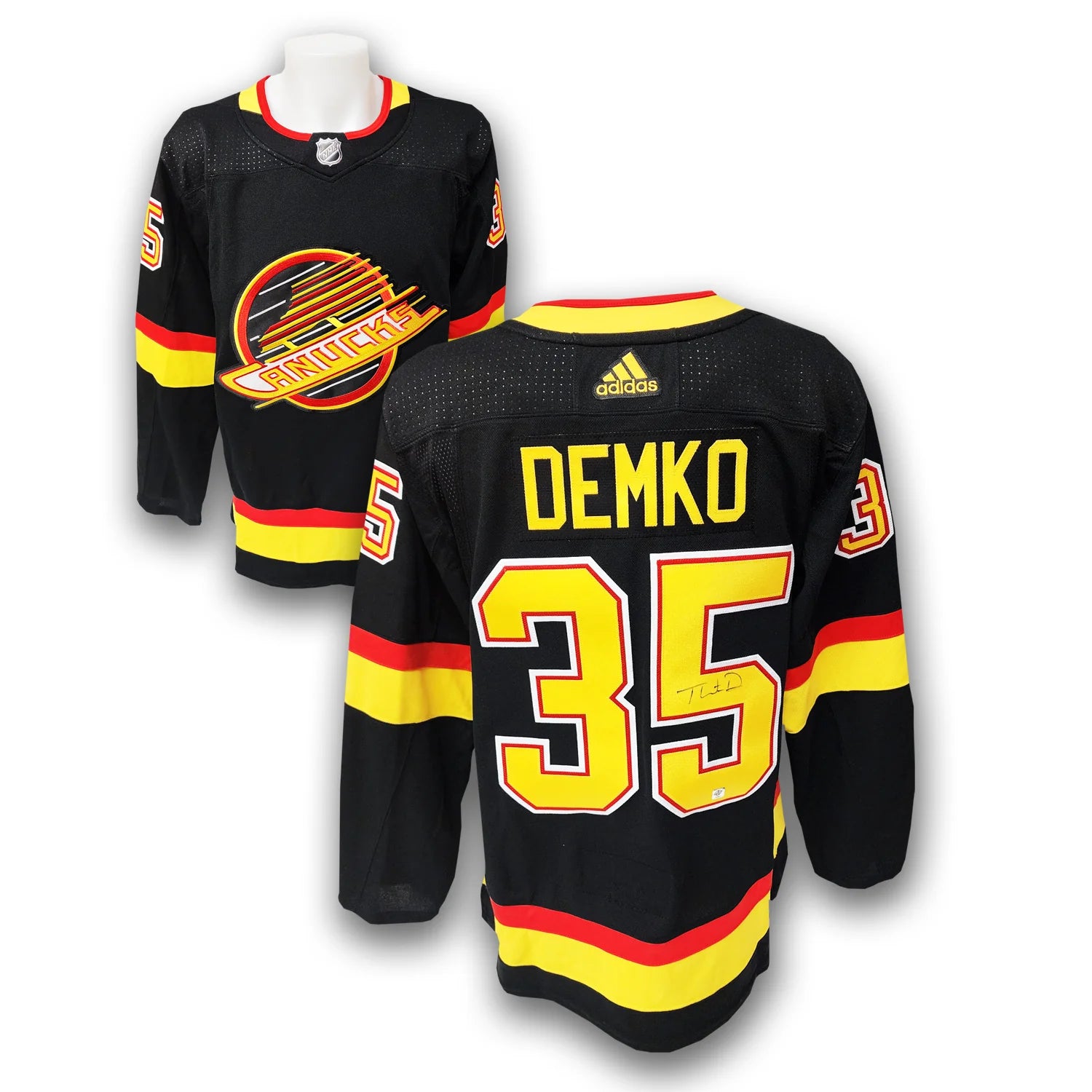 Thatcher Demko Autographed Vancouver Canucks Black Flying Skate Adidas Jersey